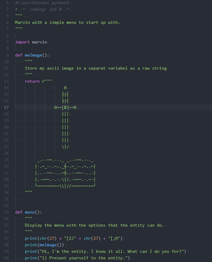 - Gör uppgiften Marvin - steg 2 för att visa att du har koll på hur man kan strukturera sitt program genom att använda funktioner. Spara alla filer under